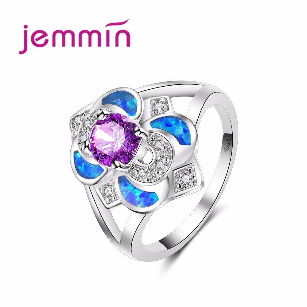 Jemmin 新着パープルクリスタル結婚指輪 925 スターリングシルバーオパールの指輪バレンタインの日 Anillos ビジュー