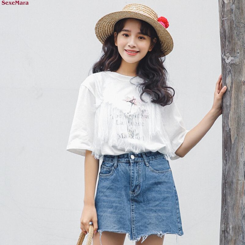 SexeMara ファッション新しい半袖フェイク二枚レースのステッチ印刷 Tシャツ送料無料