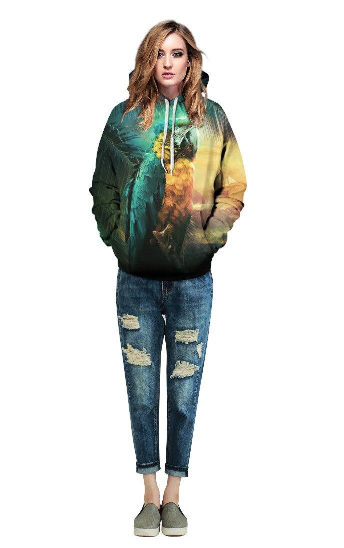 グリーンコンゴウインコオウムスポーツスーツ女性秋アクティブ緩いスケートボードスウェット冬の上着セーターフード付きパーカージャケット
