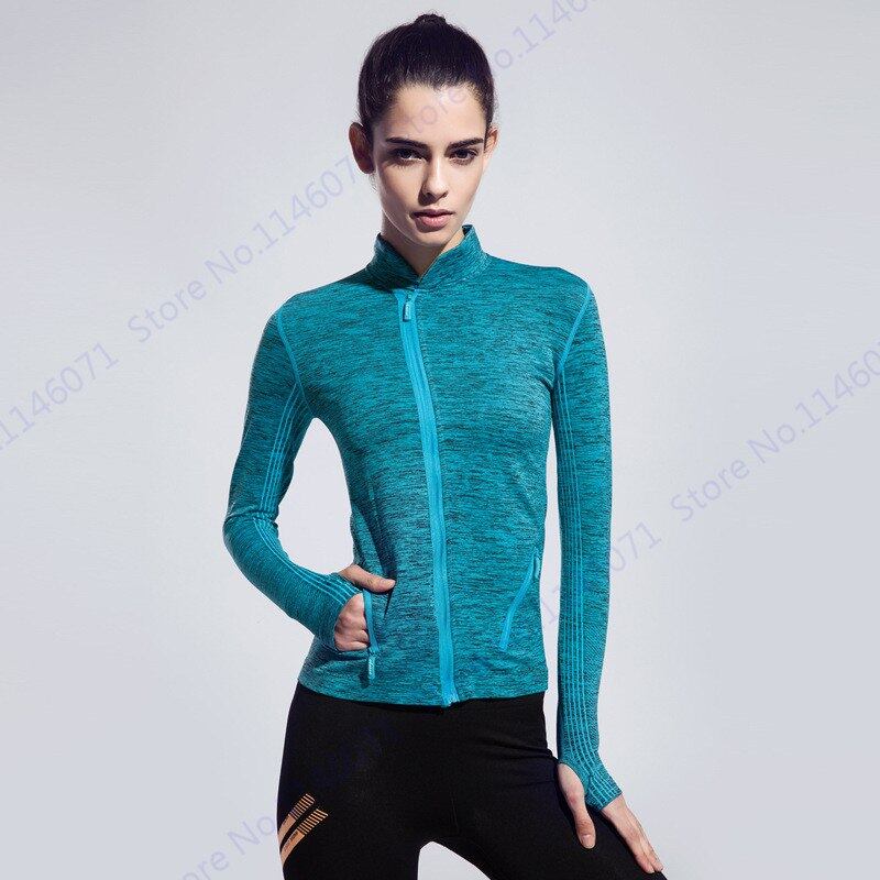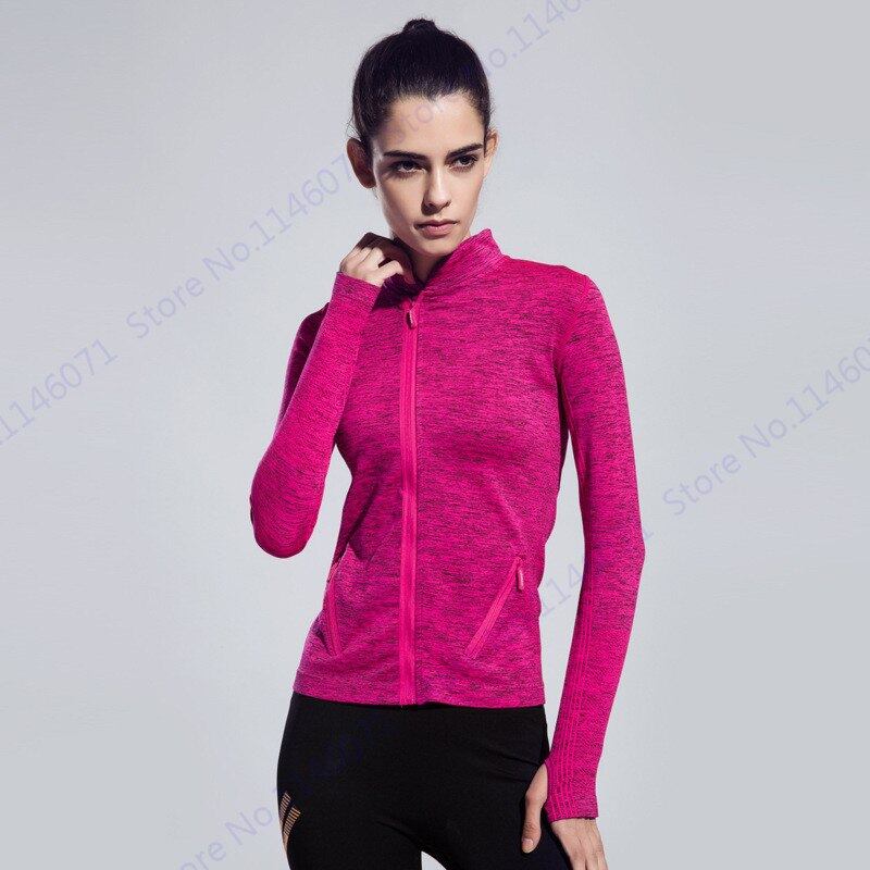通気性長袖スポーツランニングジャケット付きポケット水分吸上運動ヨガコートジッパーフィットネスジム服ファム