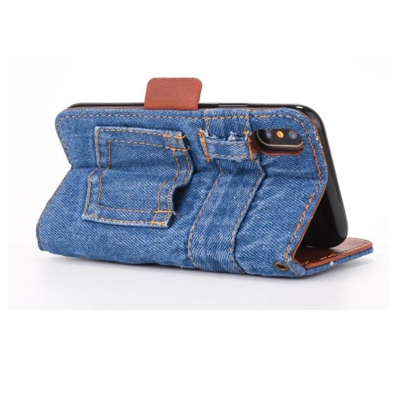 Ftaidkjファッションジーンズカウボーイポケット布puレザーケースのためiphone x 8 8プラス6 6 s 7プラス財布フリップカードホルダースタンドカバー