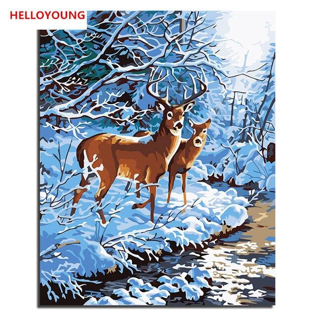動物の世界diy手塗り油絵デジタルペインティングによる数字油絵中国のスクロール絵画家の装飾