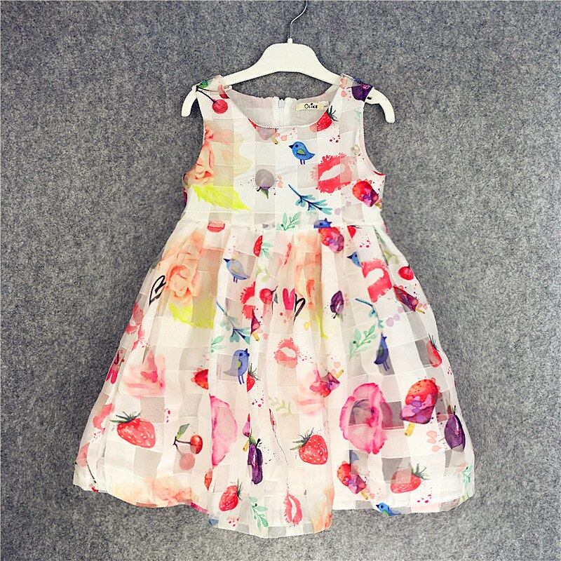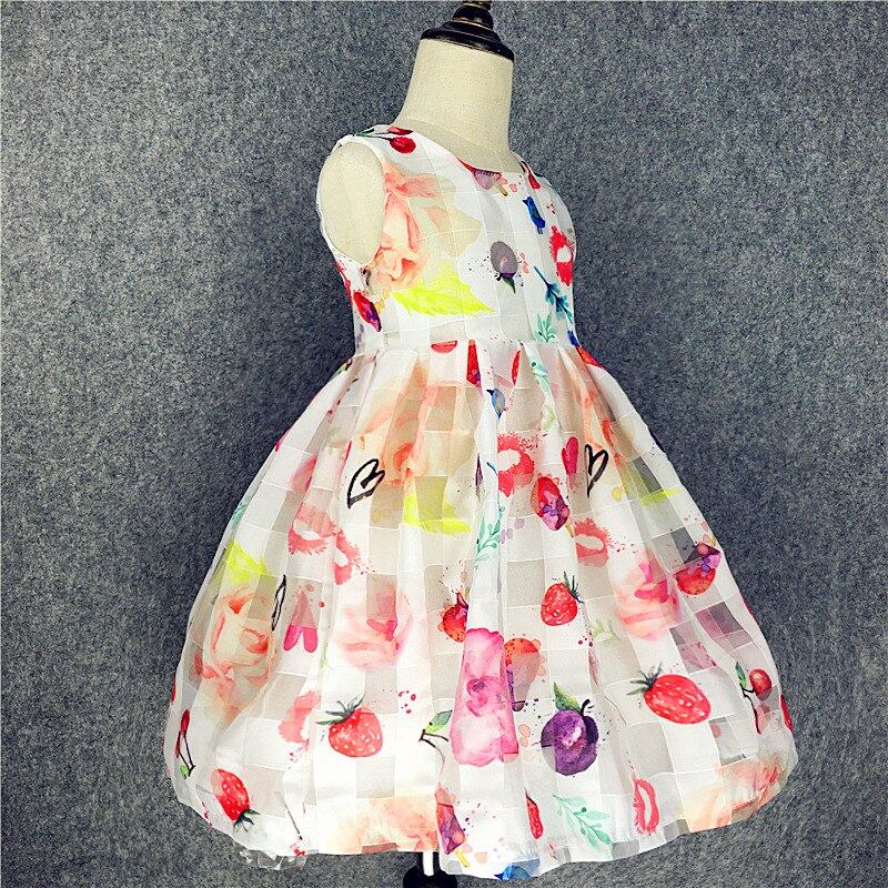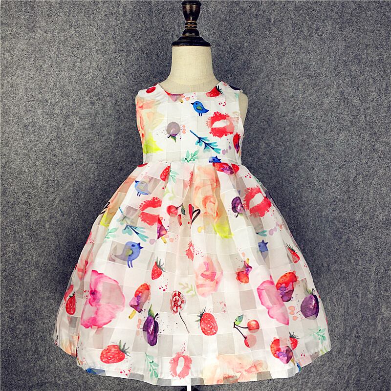 ドレスのための女の子チェリーと唇プリント柄ノースリーブパーティードレス子供服