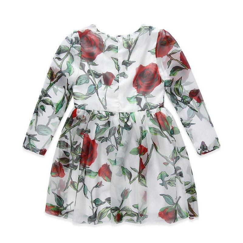 春花柄女の子のドレスファッションブランド1ピースローズ女の子服花長袖プリンセスドレス用結婚式/パーティー