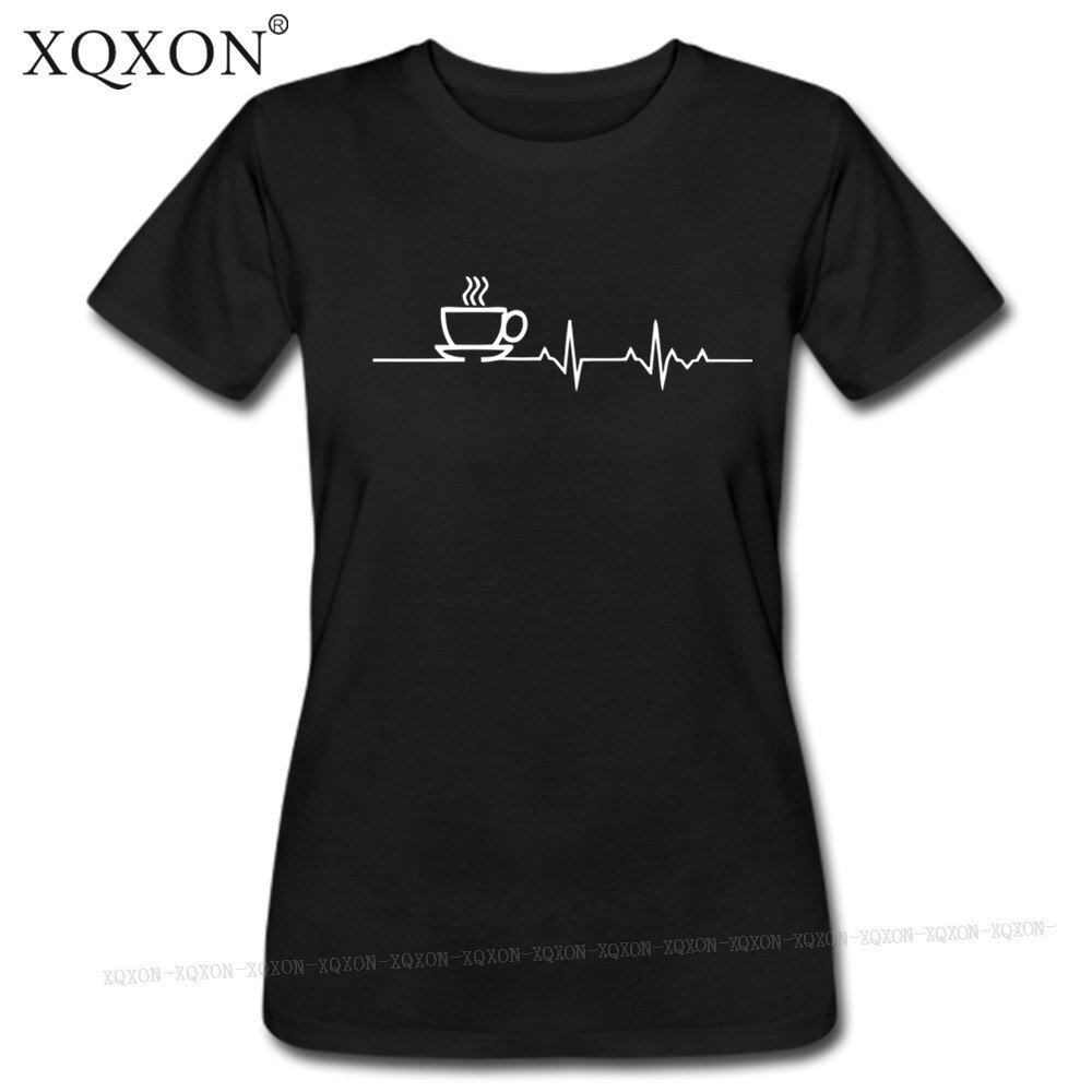 Xqxon面白いデザインプリントコーヒー恋人ハートビート女の子tシャツカジュアルファッションコットン女性tシャツトップスティーw51
