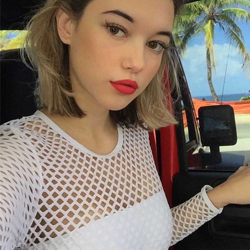 Ormellセクシーなホワイトボディスーツ女性2017中空アウトロンパースジャンプスーツ透視背中が大きく開い夏遊び着長袖全体