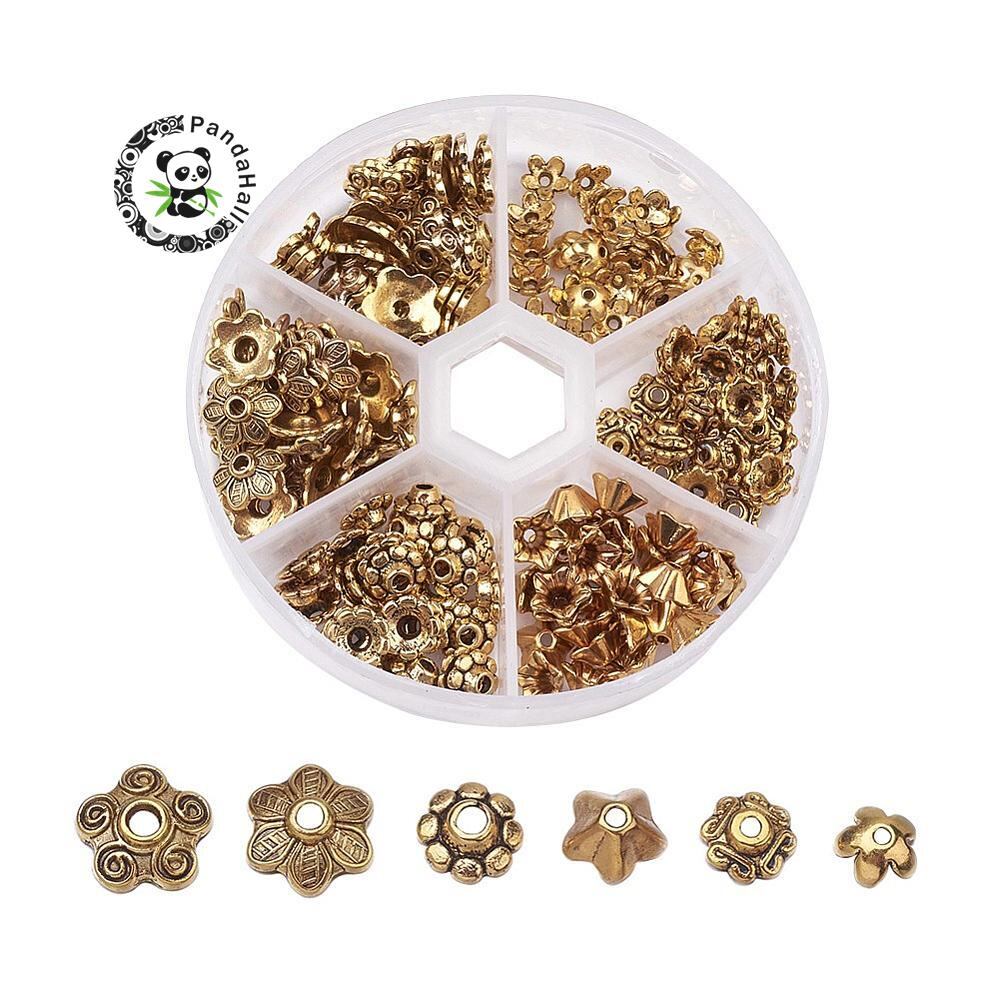 1 ボックス混合スタイルチベットスタイル合金の花ビーズキャップアンティークゴールデンシルバー 7 〜 10x4 〜 10 ミリメートル穴: 1 〜 2 ミリメートル約 30 ピース/コンパートメント