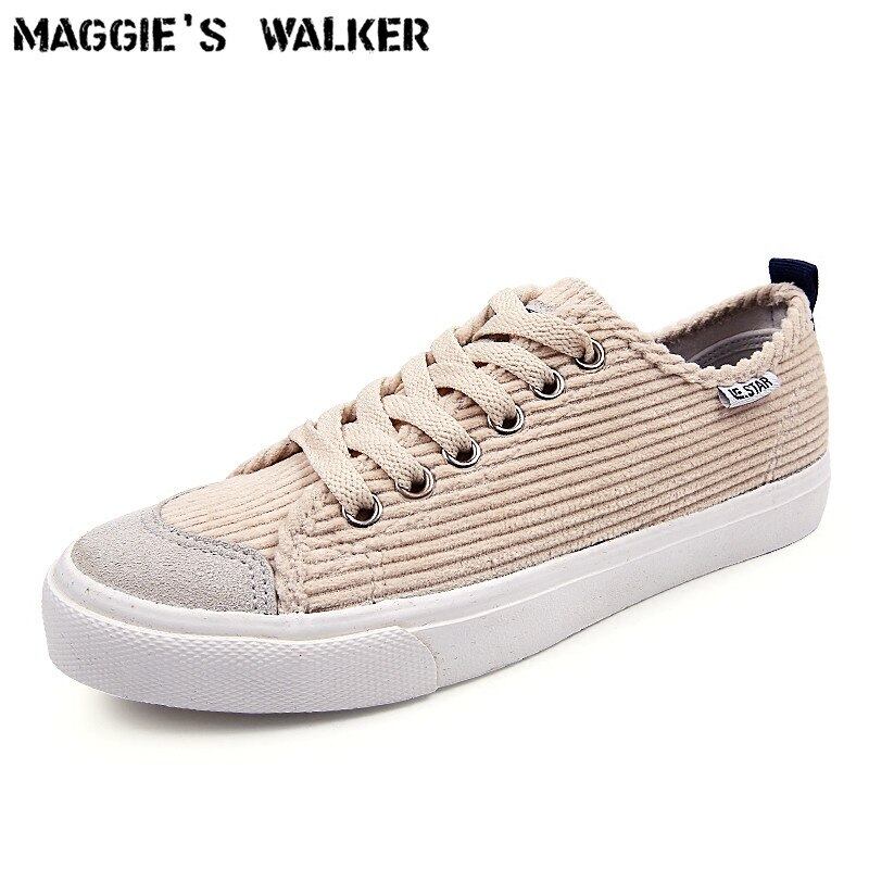 マギーのウォーカー女性ファッションキャンバスカジュアル靴ひもプラットフォームコーデュロイアウトのドアの靴サイズ35-40