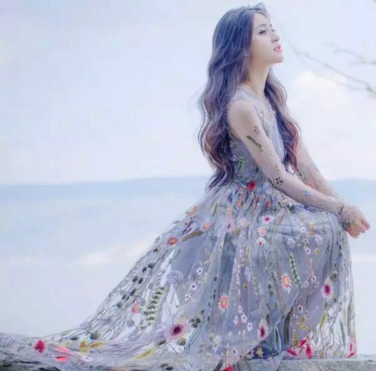2019 新夏の旅行ドレス女性メッシュ花刺繍ボヘミア長袖妖精ビーチシフォンドレス